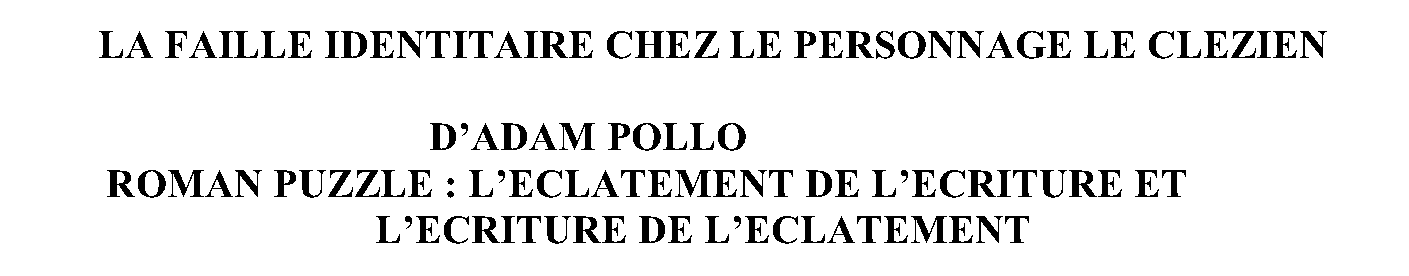 LA FAILLE IDENTITAIRE CHEZ LE PERSONNAGE LE CLEZIEN D’ADAM POLLO ROMAN PUZZLE : L’ECLATEMENT DE L’ECRITURE ET L’ECRITURE DE L’ECLATEMENT |