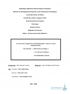 La ville entre Imaginaire et Représentation, dans le roman méditerranéen