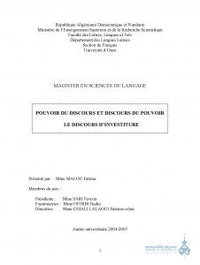 POUVOIR DU DISCOURS ET DISCOURS DU POUVOIR LE DISCOURS D’INVESTITURE