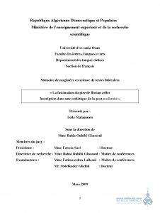 « La fascination du pire de florian zeller Inscription dans une esthétique de la post-modernité » |