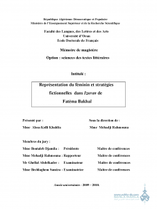 Représentation du féminin et stratégies fictionnelles dans Izuran de Fatéma Bakhaï |