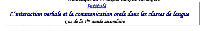 Intitulé L’interaction verbale et la communication orale dans les classes de langue Cas de la 1ère année secondaire |