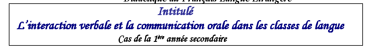 Intitulé L’interaction verbale et la communication orale dans les classes de langue Cas de la 1ère année secondaire |
