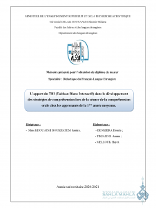L’apport du TBI (Tableau Blanc Interactif) dans le développement des stratégies de compréhension lors de la séance de la compréhension orale chez les apprenants de la 1ère année moyenne