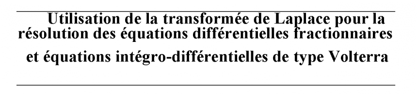 Utilisation de la transformée de Laplace pour la résolution des équations différentielles fractionnaires et équations intégro-différentielles de type Volterra |