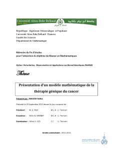 Présentation d’un modèle mathématique de la thérapie génique du cancer |