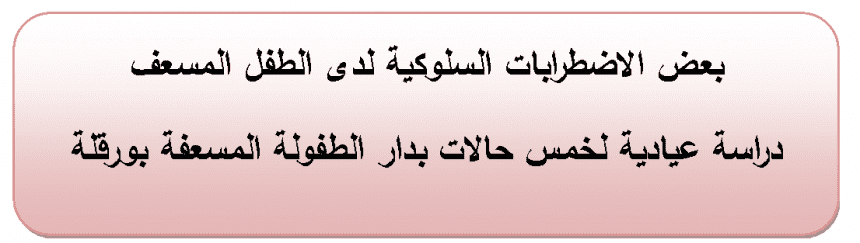 بعض الاضطرابات السلوكية لدى الطفل المسعف دراسة عيادية لخمس حالات بدار الطفولة المسعفة بورقلة