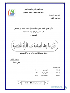المذكرة بعنوان ” قلق ما بعد الصدمة عند المرأة المغتصبة “