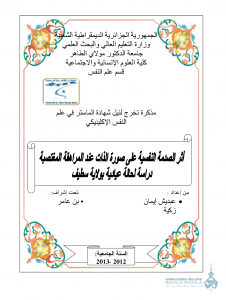 نضع بين أيديكم مذكرة تخرج تخصص “علم النفس الإكلينيكي “