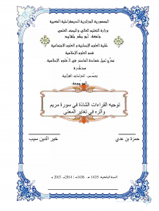 | عنوان المذكرة: | توجیه القراءات الشاذة في سورة مریم وأثره في تغایر المعنى |