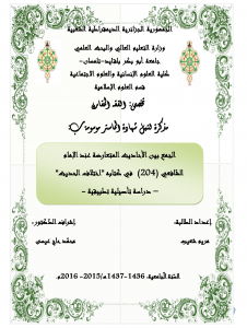 الجمع بين الاحاديث المتعارضة عند الامام الشافعي -204- في كتابه اختلاف الحديث – دراسة تأصيلية تطبيقية