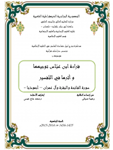 قراءة ابن عبّاس توجيهها و أثرها في التّفسير سورة الفاتحة والبقرة وآل عمران – أنموذجا –