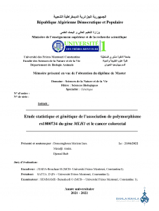 Etude statistique et génétique de l’association du polymorphisme du gène MLH1 et le cancer colorectal |