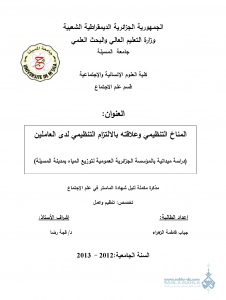 المناخ التنظيمي وعلاقته بالالتزام التنظيمي لدى العامليندراسة ميدانية بالمؤسسة الجزائرية العمومية لتوزيع المياه بمدينة المسيلة |