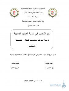 دور التكوين في تنمية الموارد البشريةدراسة ميدانية بمؤسسة تيندال بالمسيلة نموذجا |