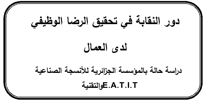 دور النقابة في تحقيق الرضا الوظيفي لدى العمالدراسة حالة بالمؤسسة الجزائرية لأنسجة الصناعية EATIT والتقنية |