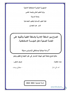 الصراع بين السلطة الادارية والسلطة الطبية وتأثيرها على الخدمة الصحية داخل المؤسسة الاستشفائية |