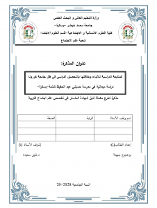 المتابعة الدراسية للأبناء وعلاقتها بالتحصيل الدراسي في ظل جائحة كورونا دراسة ميدانية في مدرسة حسيني عبد الحفيظ شتمة – بسكرة |